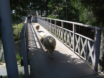 やっとチーズ館へ繋がる道へ渡るための橋がみえてきた。